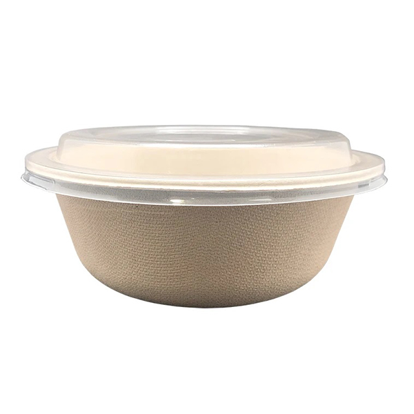 Bols de fibra de trigo redondos con tapa PET. Bols 100 % ecológicos y aptos para el microondas ( sin tapa).La caja contiene 6 paquetes de 50 boles y 6 paquetes de 50 tapas.