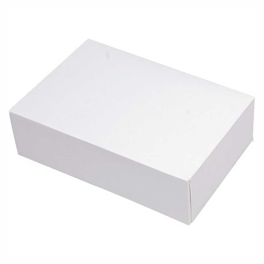 Caja de cartón pastelería blanca rectangular de 17 x 14 x 6 cms de altura, con su tapa incorporada, pensada inicialmente para pasteles y tartas, es un envase muy polivalente y cómodo. Y además es fácilmente personalizable con un sticker, disponemos de una amplia gama de diferentes tamaños para que encuentres tu caja ideal
