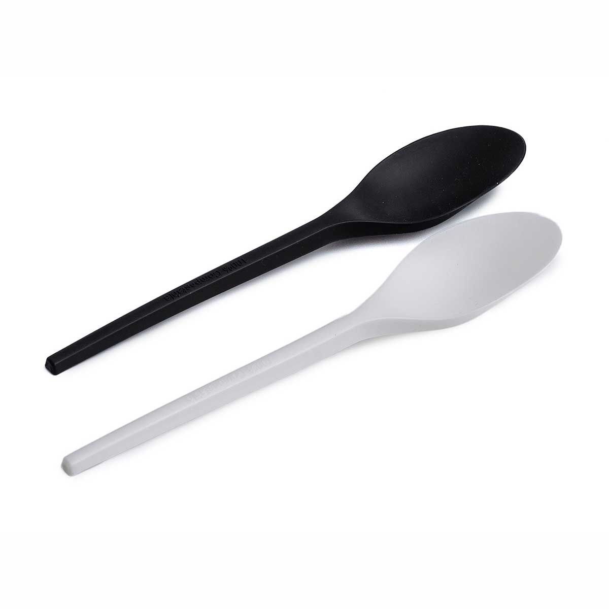 Cuchara de sopa de CPLA negra fabricada en almidón de maíz. Biodegradable y ecológico. Déjate llevar por la tendencia de ser sostenibles con el medio ambiente. La caja completa contiene 30 paquetes de 50 unidades.