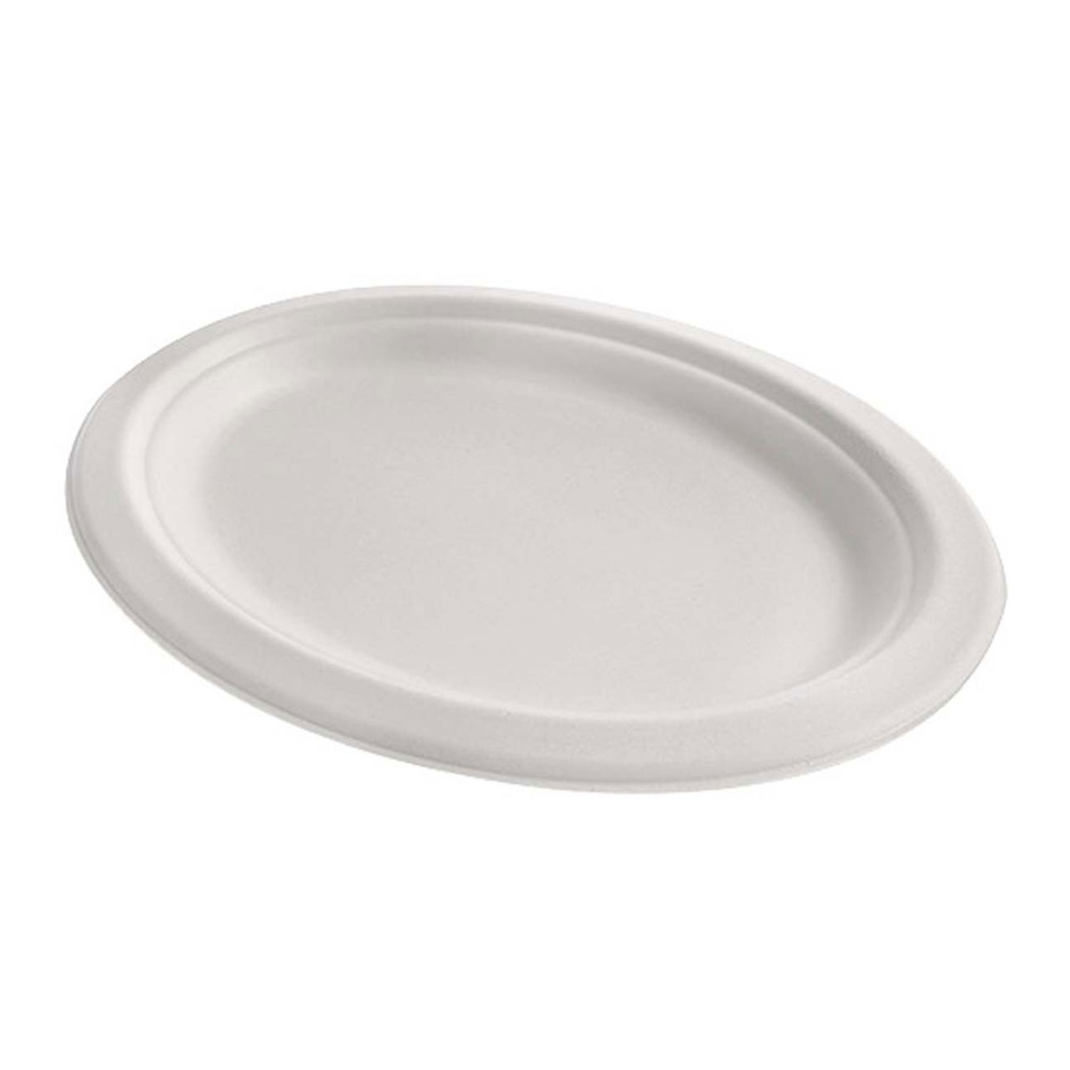 Plato/ bandeja de pulpa con forma ovalada de 26 cms en su lado largo y 20 cms en el estrecho. Ideal para tus presentaciones. Los platos de pulpa de caña de azucar son una opción muy interesante ya que pueden ir al microondas y además son 100% . La caja completa contiene 16 paquetes de 50 unidades.