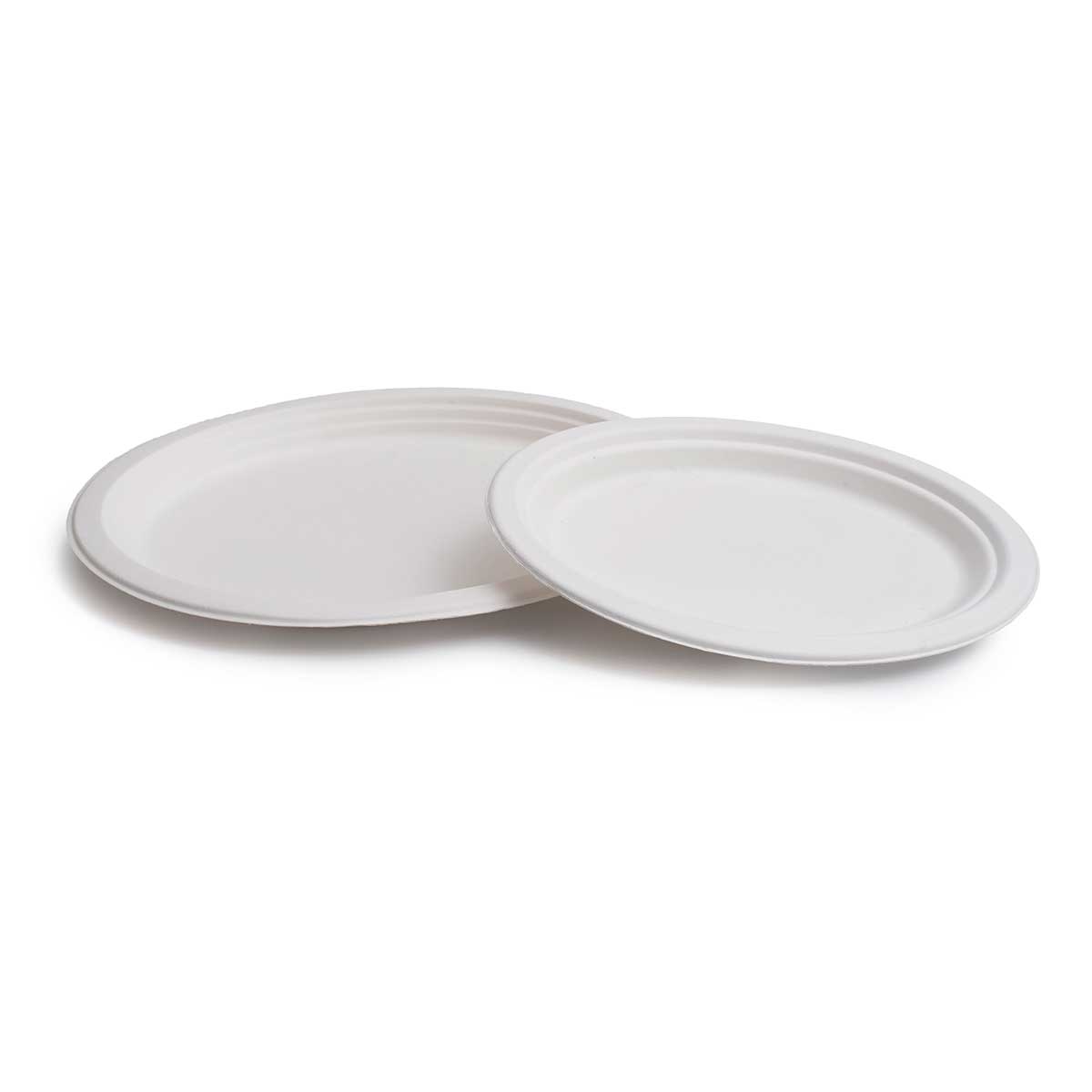 Los platos fabricados a partir de las fibras de la caña de azucar son 100 % compostables y biodegradables. Son la perfecta sustitución al plato de cartón o de plástico y está disponible en múltiples medidas y en varios colores.
