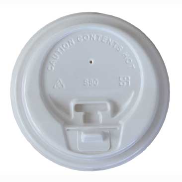 Tapa de PS blanca con agujero, de 90 mm de diámetro, para vasos de cartón 12-16 oz. Permite cerrar los vasos para un correcto take away asegurando su contenido. La caja completa contiene 20 paquetes de 50 unidades.