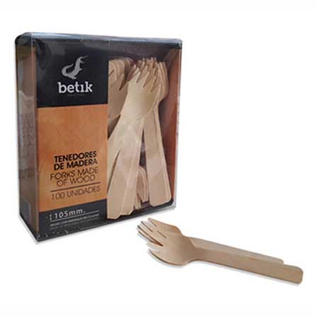 Tenedor postre de madera natural de 10,5 cm. Es rígido y resistente, con un diseño precioso para decorar cualquier mesa o acompañar a cualquier envase para el take away. La caja completa contiene 30 paquetes de 100 unidades.