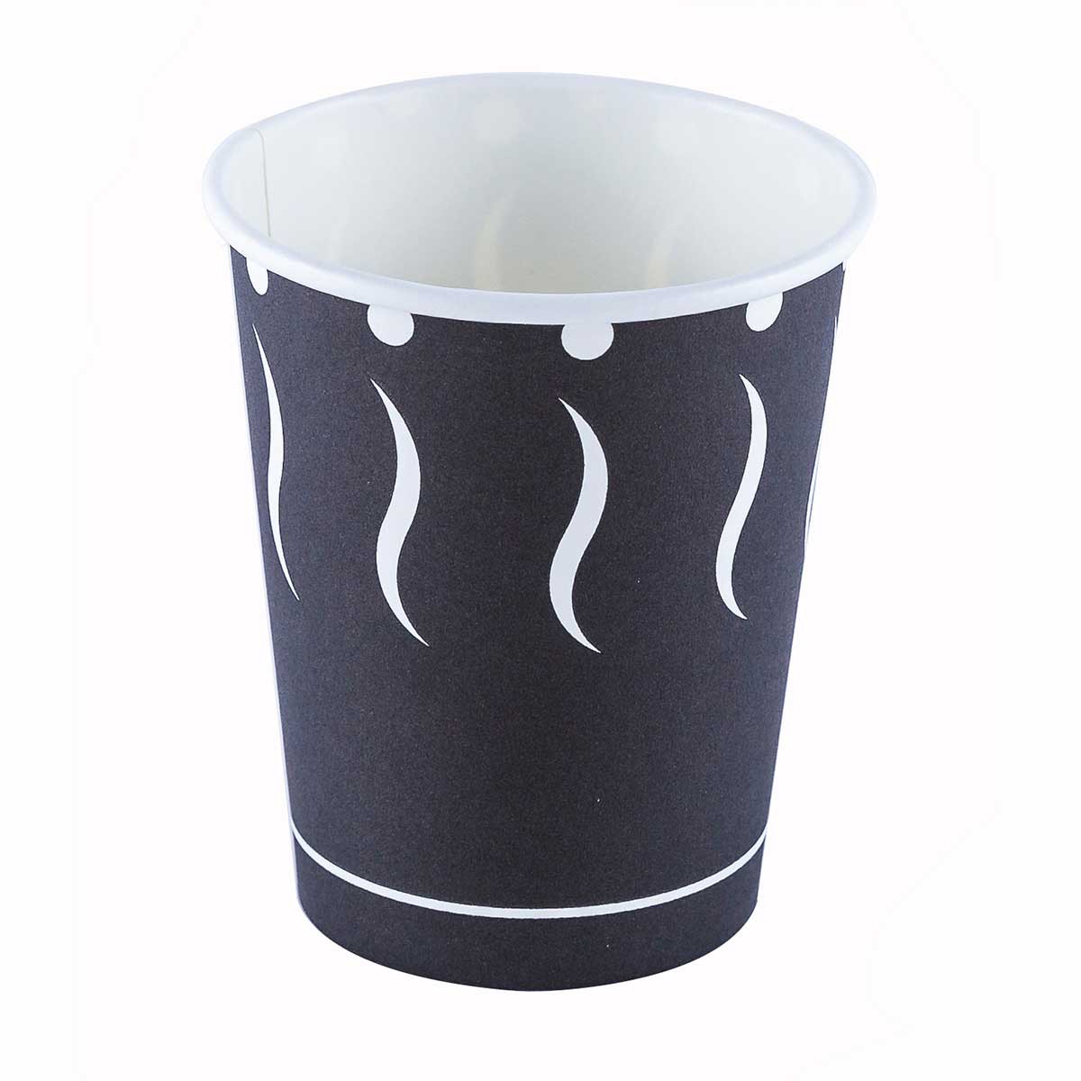 Vaso de cartón con un bonito estampado en blanco y negro. Su capacidad es de 3oz, 90 ml con interior de PE. Ideal para todo tipo de bebidas. La caja completa contiene 20 paquetes de 50 unidades.