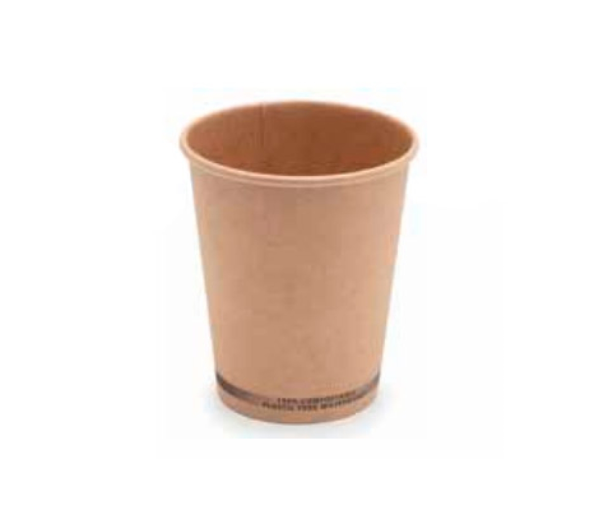 Vaso de cartón kraft 12 oz (360 ml) WATER BASED, resina de dispersión a base de agua que forma una barrera efectiva dentro del vaso para poder contener líquidos. La caja completa contiene 20 paquetes de 50 unidades.